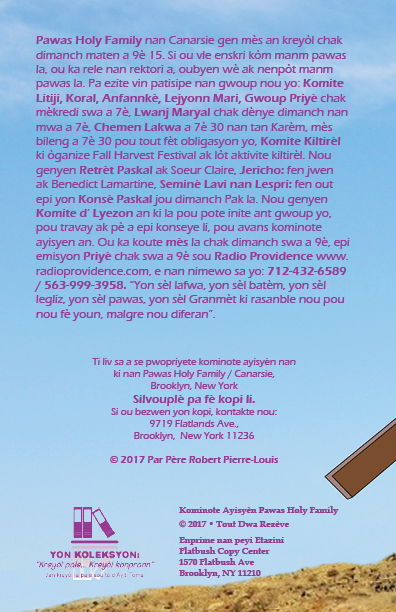 Liv 60 paj an koulè, papye glase, lang kreyòl (dimansyon 5.5 X 8.5, Mas 2016)