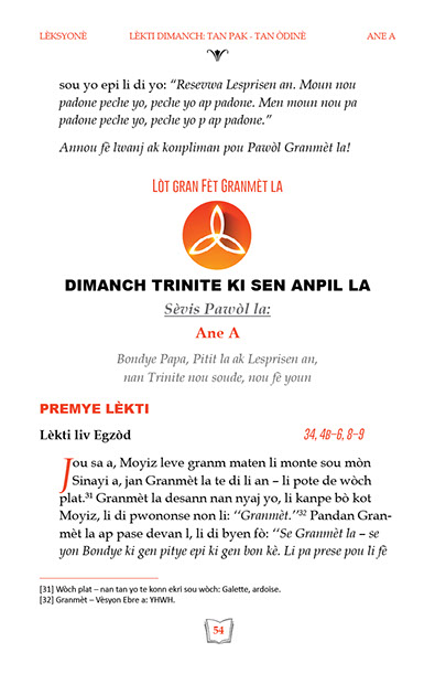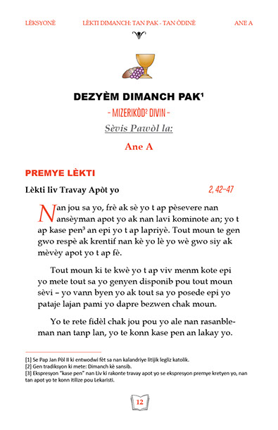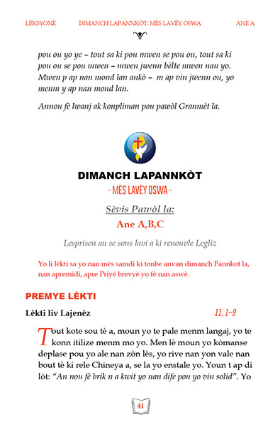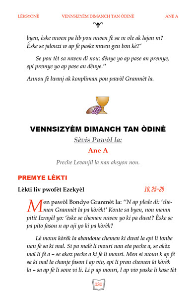 Liv sa genyen lèkti ak levanjil lamès chak dimanch Tan Pak - Tan Òdinè - Ane A. Yon bon Gid pou tout kretyen Katolik.