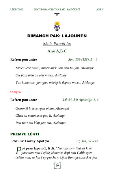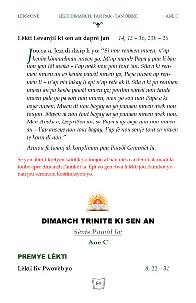 Liv sa genyen lèkti ak levanjil lamès chak dimanch Tan Lavan Tan Karèm Ane C. Yon bon Gid pou Katolik.